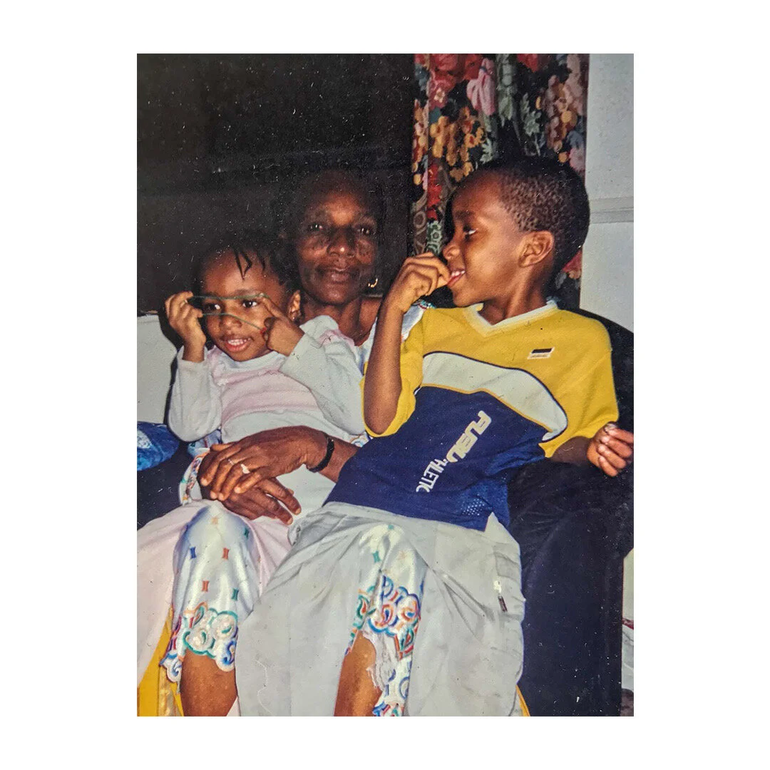 V with his sister, Chinye Onwuaduegbo and his grandma.